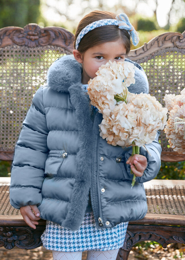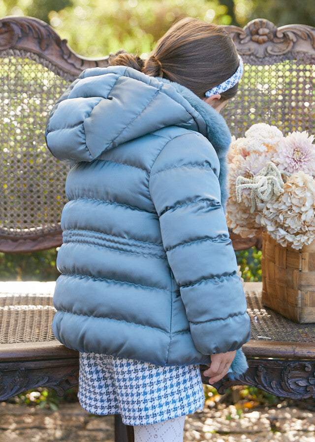 Blusão azul acetinado com pelo da Abel e Lula