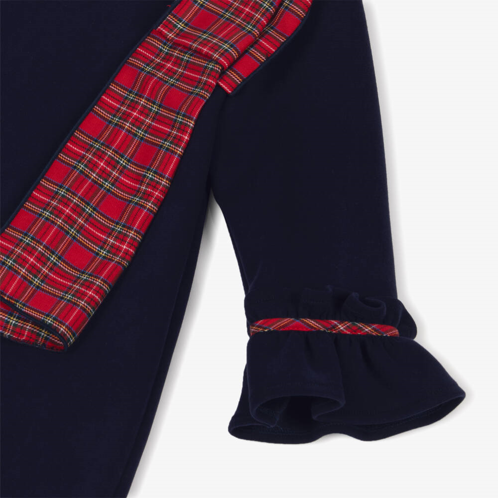 Vestido azul marinho com laço xadrez vermelho da Foque
