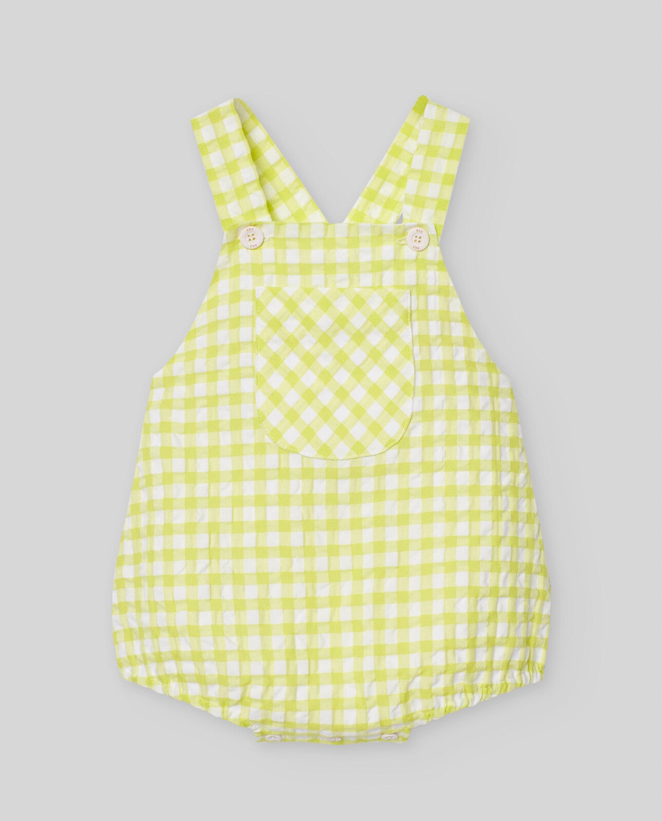 Baby dungarees from Spanish brand Paz Rodriguez. Featuring crossover straps at the back and a front opening with personalized brand buttons. Elastic waistband for a better fit and internal lining for added comfort and softness against baby's skin. Fastens with buttons between the legs for easy diaper changes.