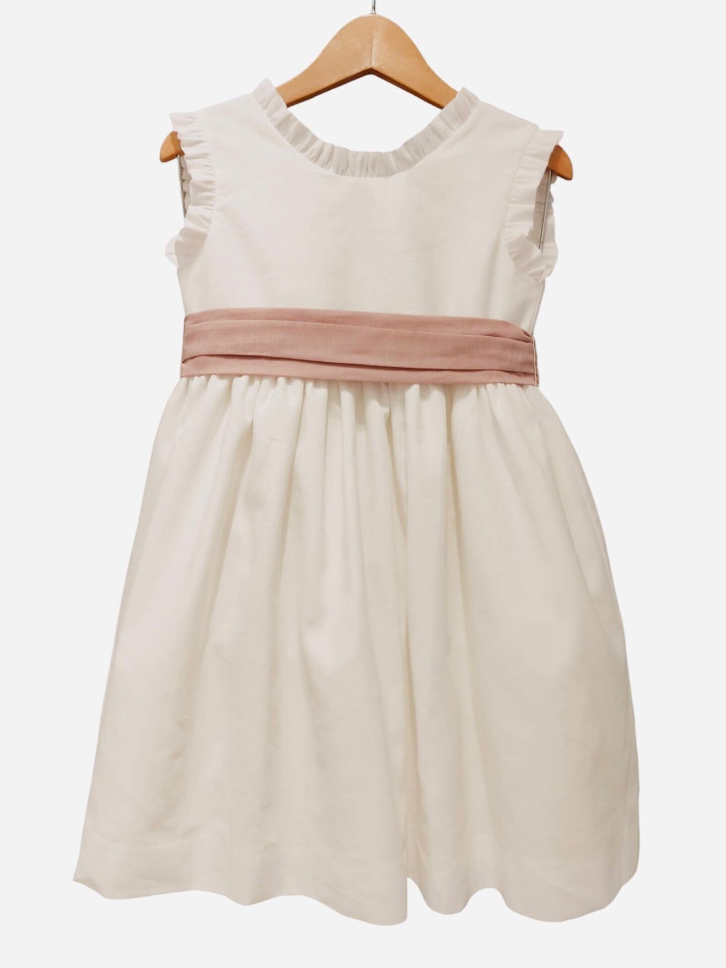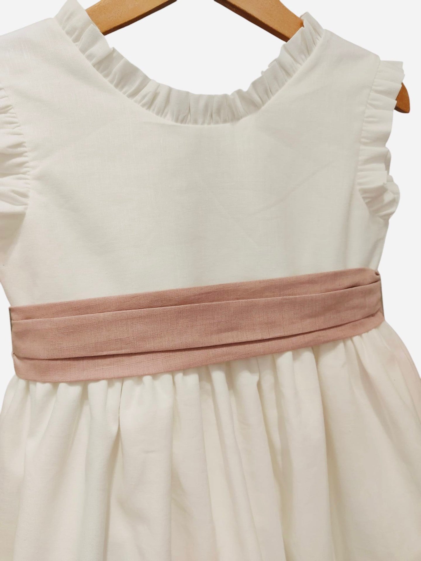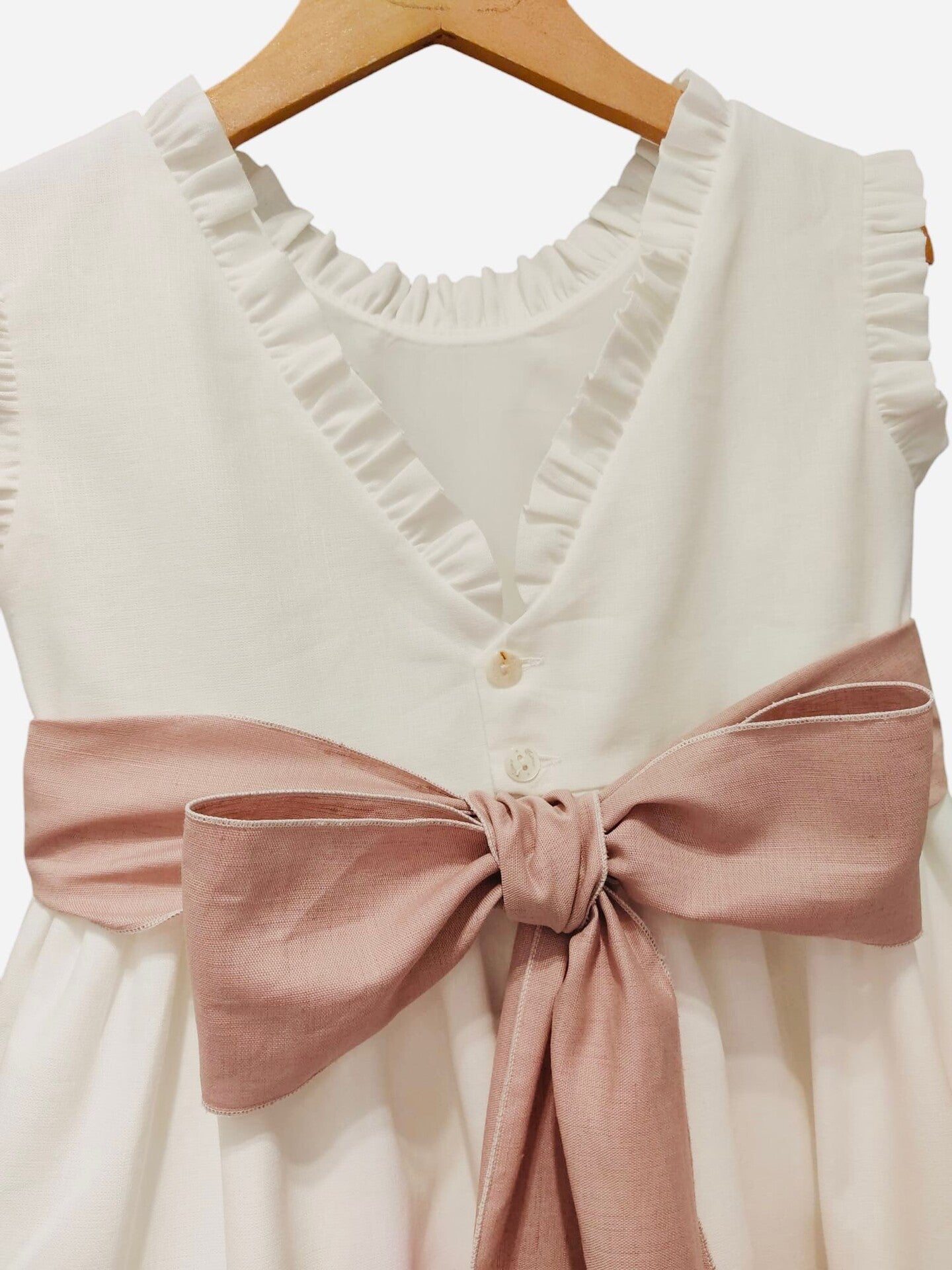 NISERET RAW LINEN DRESS WITH OLD PINK SASH