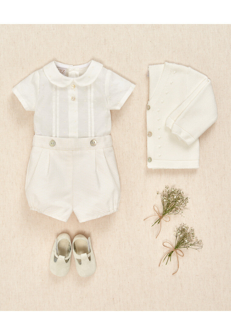 "Paz V25" pearl shirt and shorts set by Paz Rodriguez