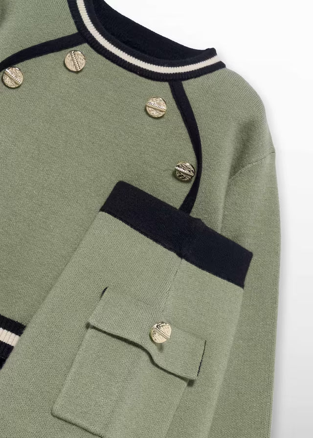 Este conjunto de saia e camisola verde seco para meninas da Abel & Lula combina o estilo clássico com detalhes modernos. Produzidos numa malha de viscose aconchegante, o look apresenta detalhes a preto a contrastar e botões decorativos. A saia inclui bolsos práticos, adicionando praticidade ao seu design estiloso.