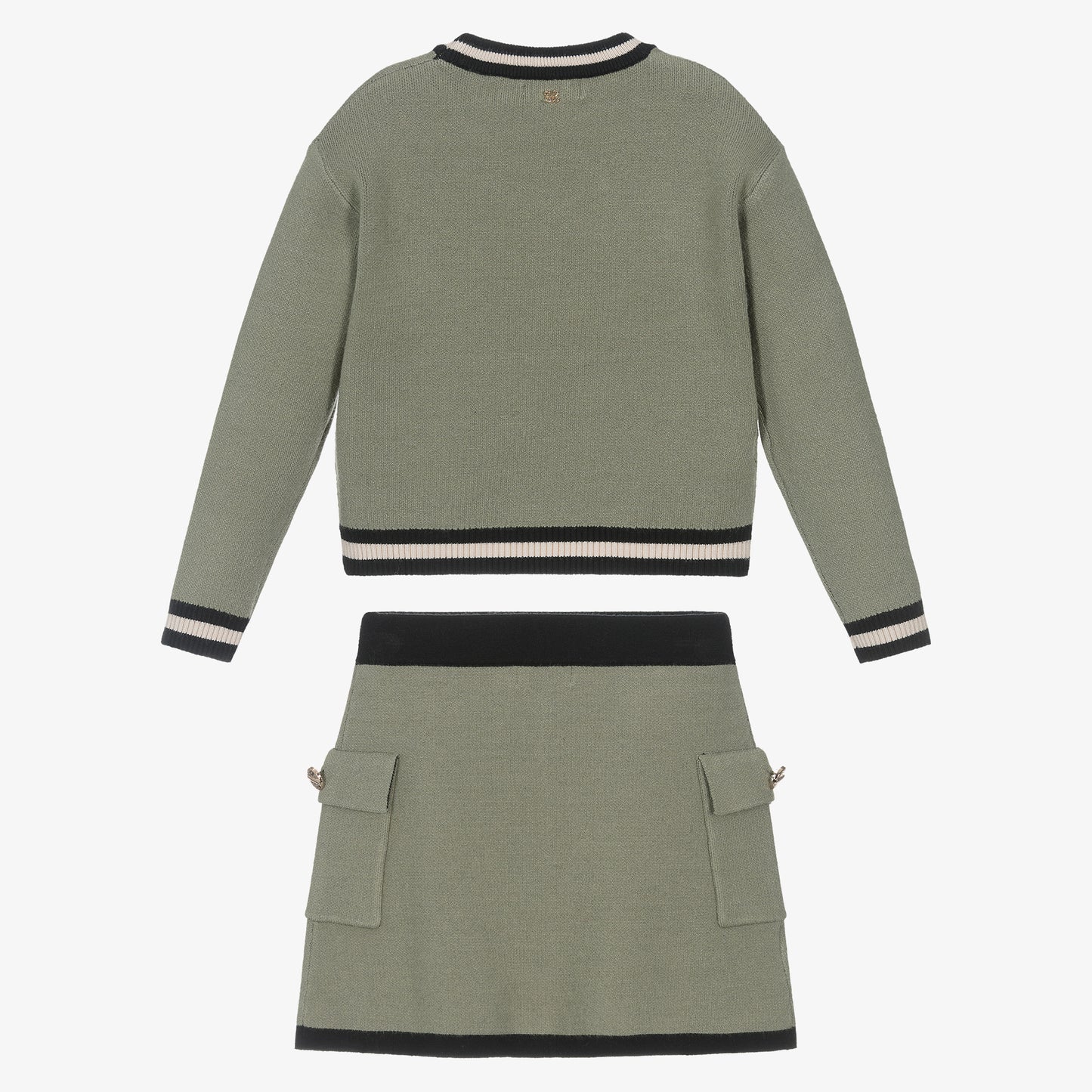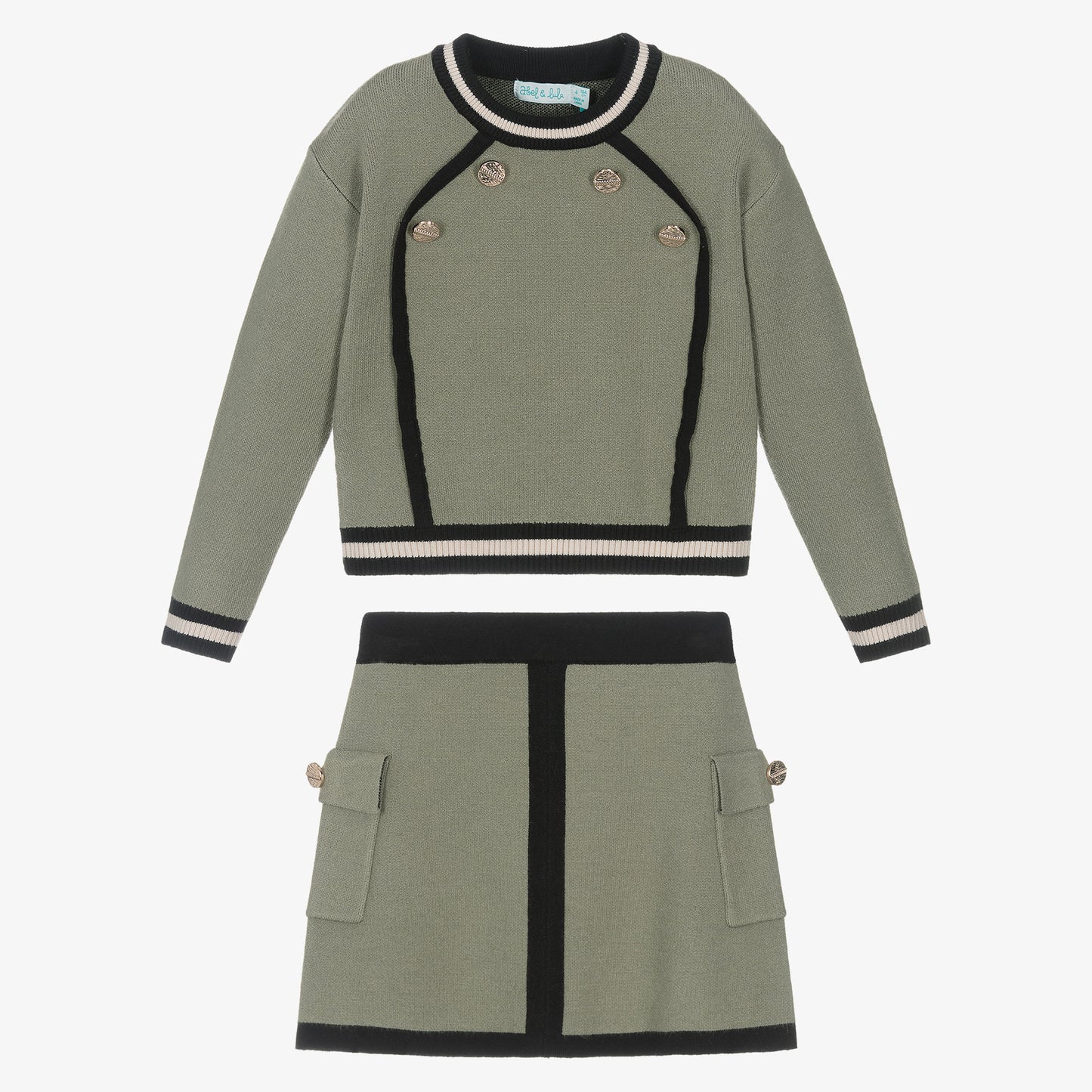 Conjunto de saia e camisola de malha verde para meninas do Abel e Lula