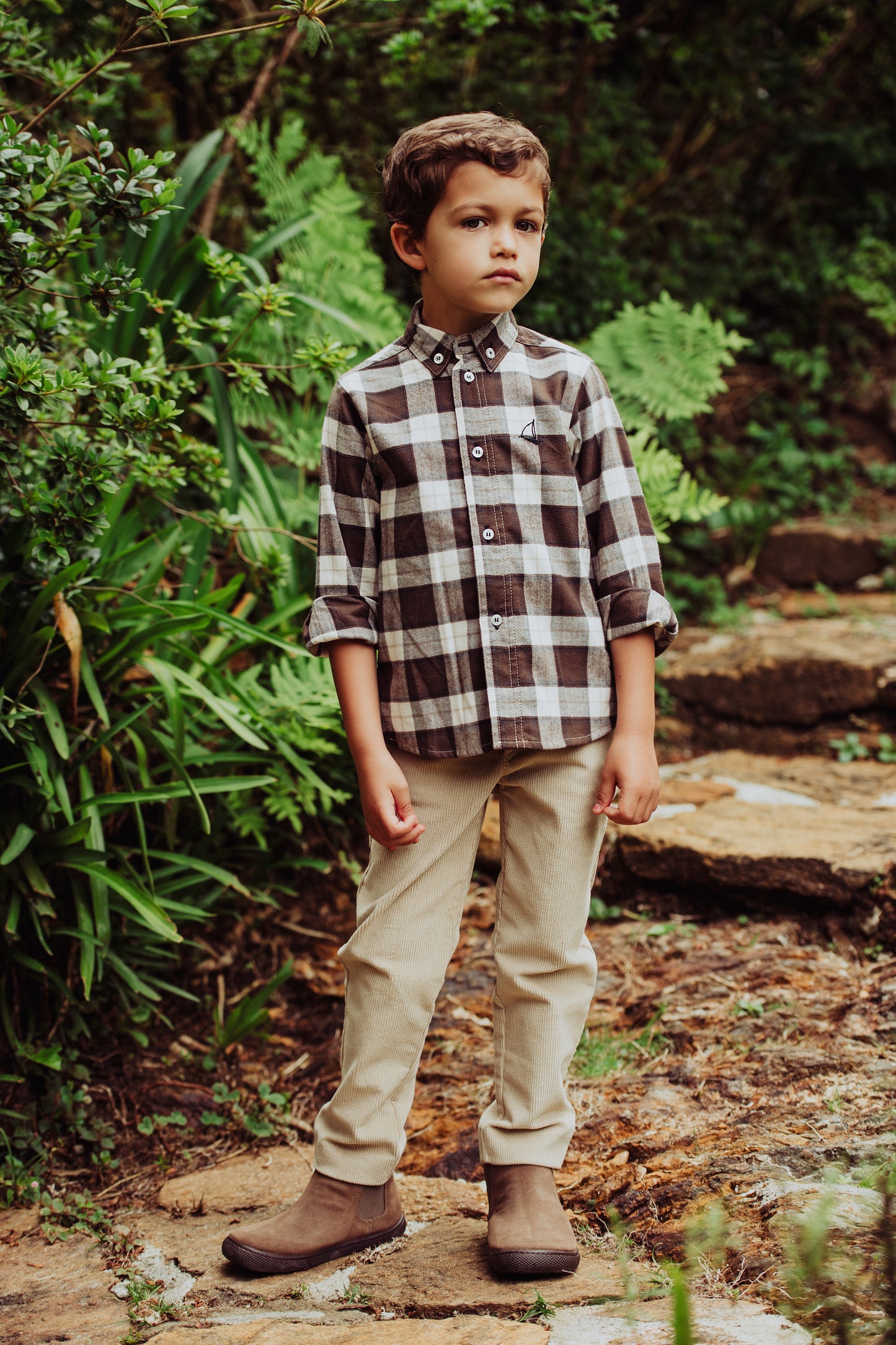 Beige pants for boys from the Spanish brand Foque. Made from fine, lightweight, and soft corduroy with a touch of stretch for added comfort. These casual, classic, and elegant pants feature slanted front pockets and welt pockets on the back. They fasten with a button and zipper and have an adjustable waistband for a comfortable fit on any waist.