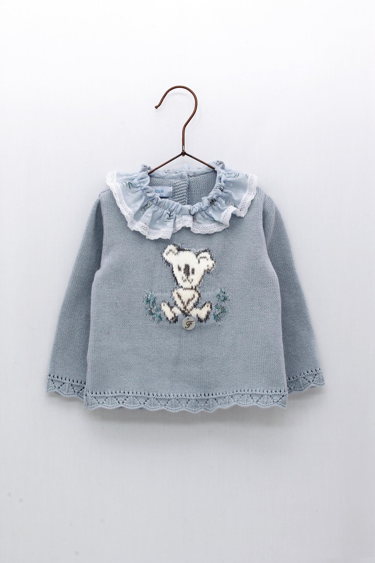 Newborn and baby girl sweater and pants set in koala blue Foque