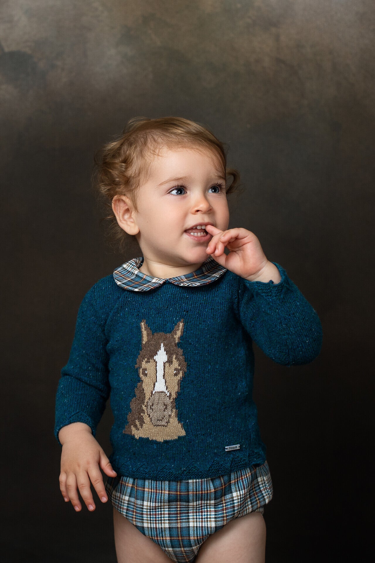 Baby boy set: "horse" knit sweater and plaid diaper cover by Foque