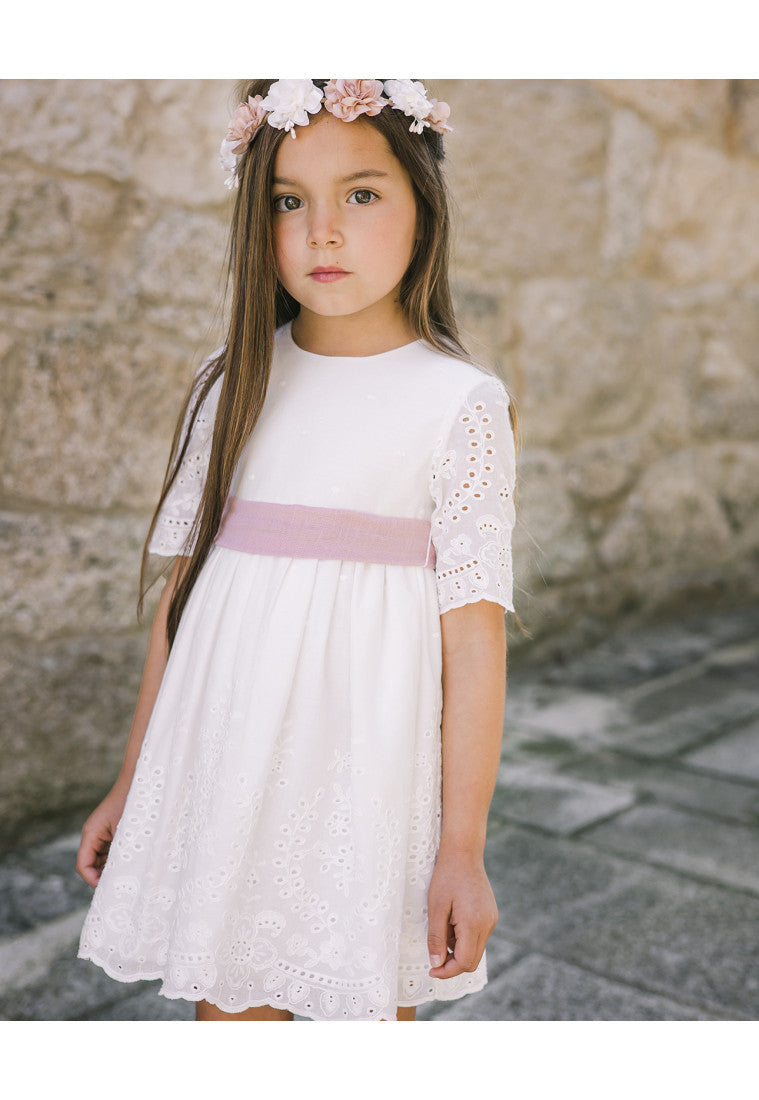 "Ceremonia V25" embroidered cotton dress by Paz Rodriguez