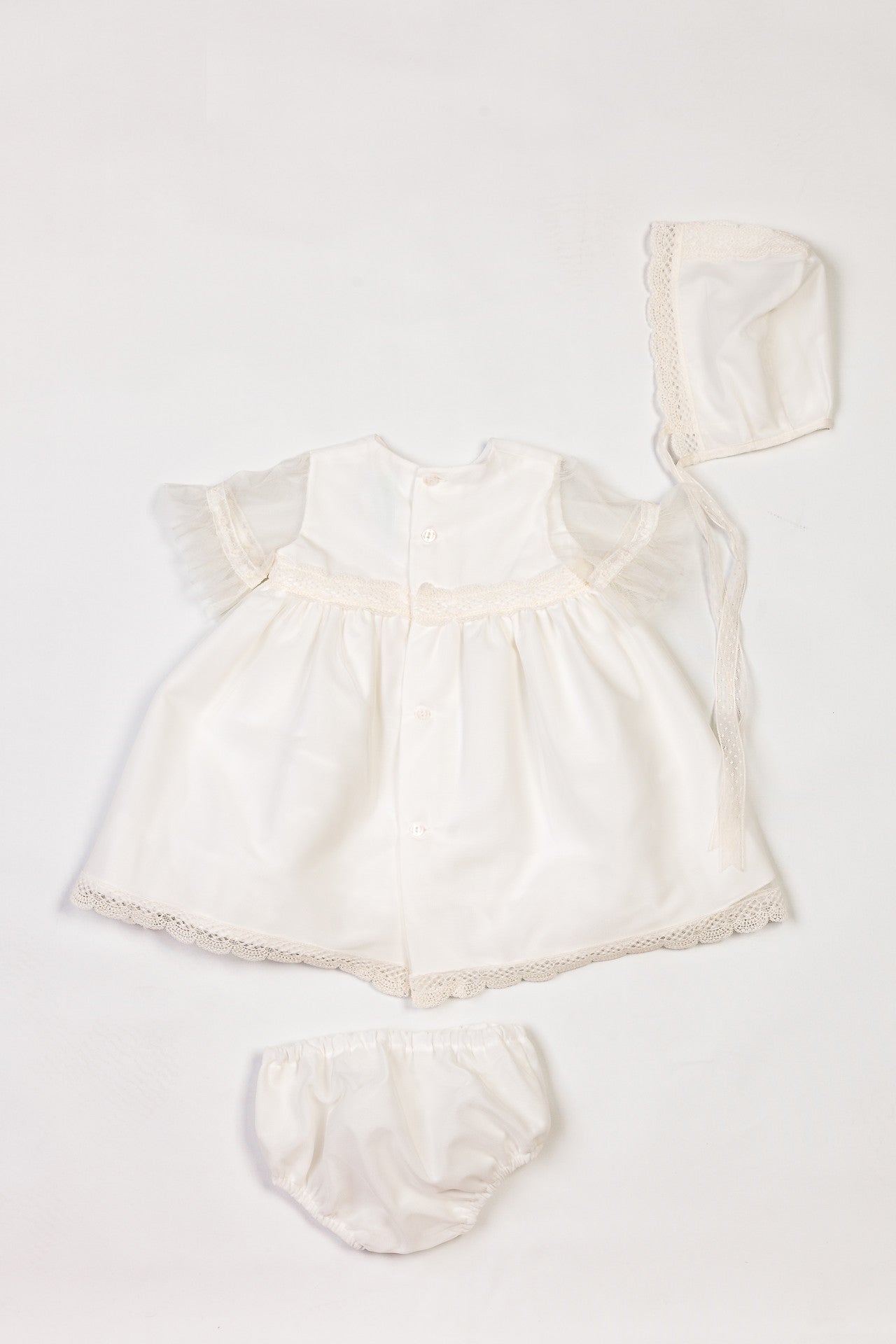 Niseret Formal Pearl Diaper Cover and Bonnet Dress