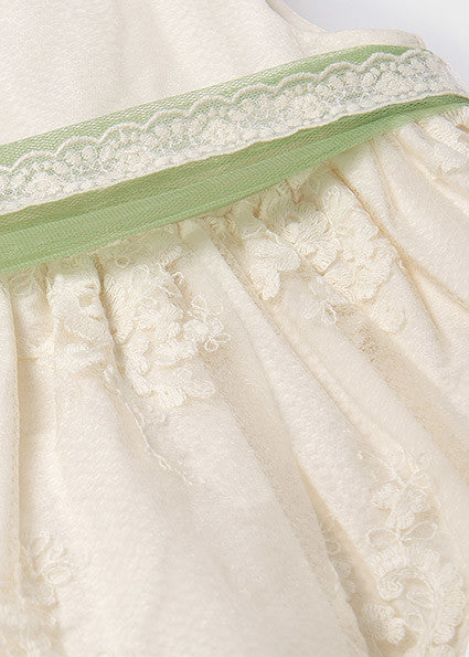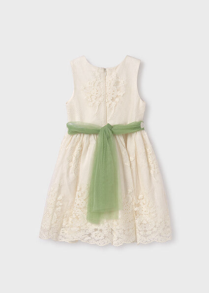Vestido de ceremonia con fajín verde de Abel y Lula