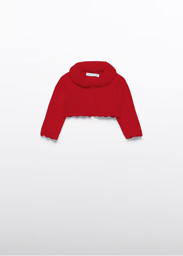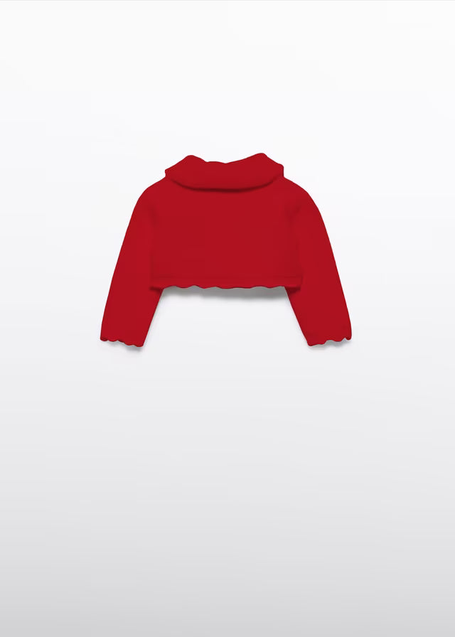 Abrigo de bebé niña de punto rojo con cuello de Abel y Lula.