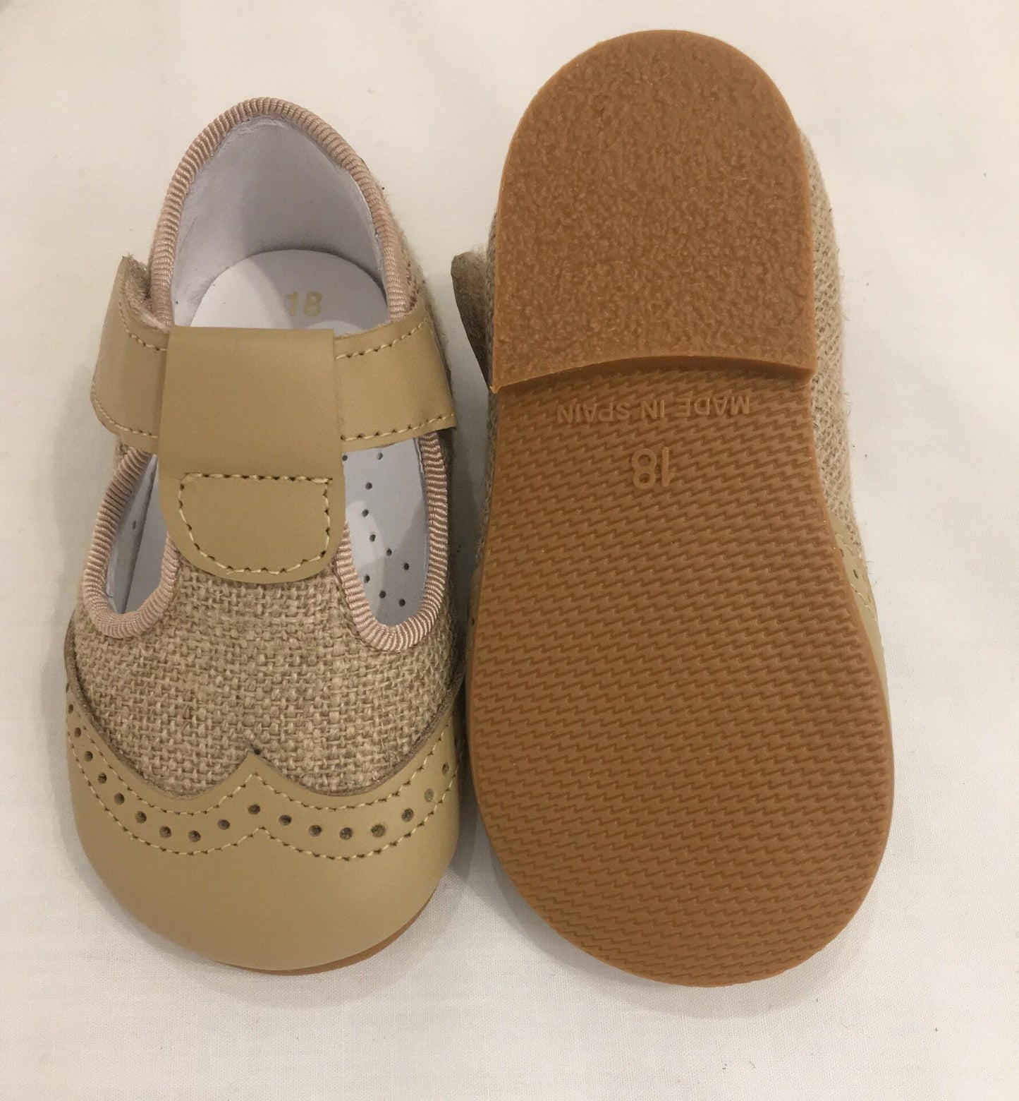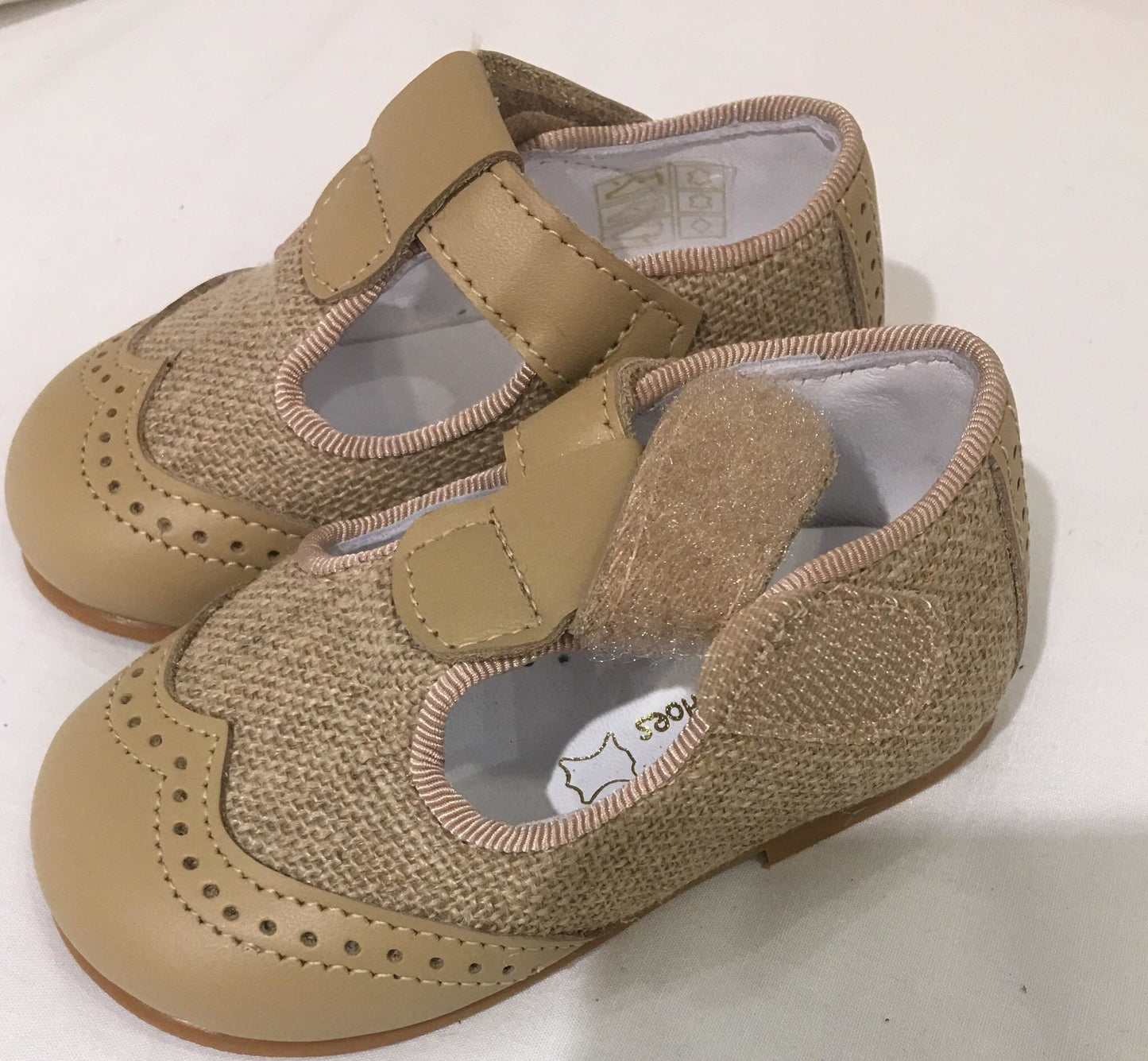 Zapato inglés en lino y piel beige