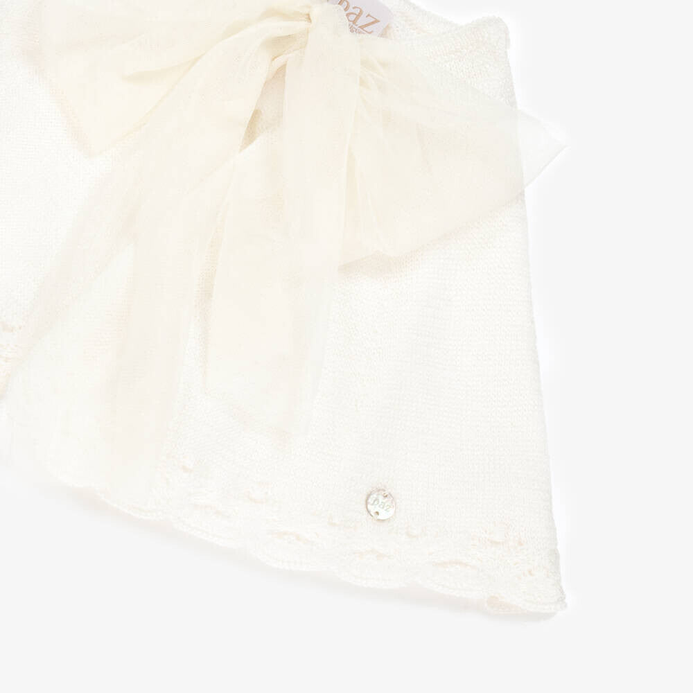 Capa de punto de algodón color crudo para niña "Ceremonia V25" de Paz Rodríguez
