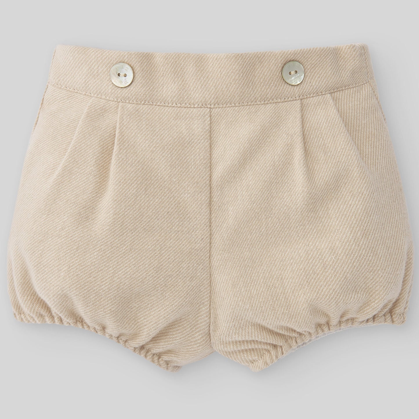 Se abrocha con botones en la espalda. Shorts de algodón cepillado en beige en contraste, con cinturilla elástica para un ajuste ceñido. Totalmente forrado.