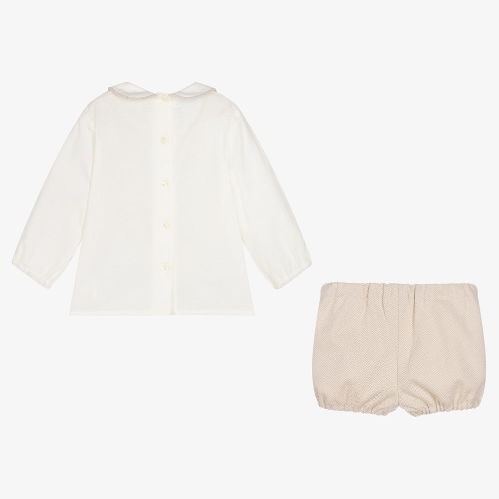 Conjunto de pantalón corto y camisa de niño en tonos beige de Foque