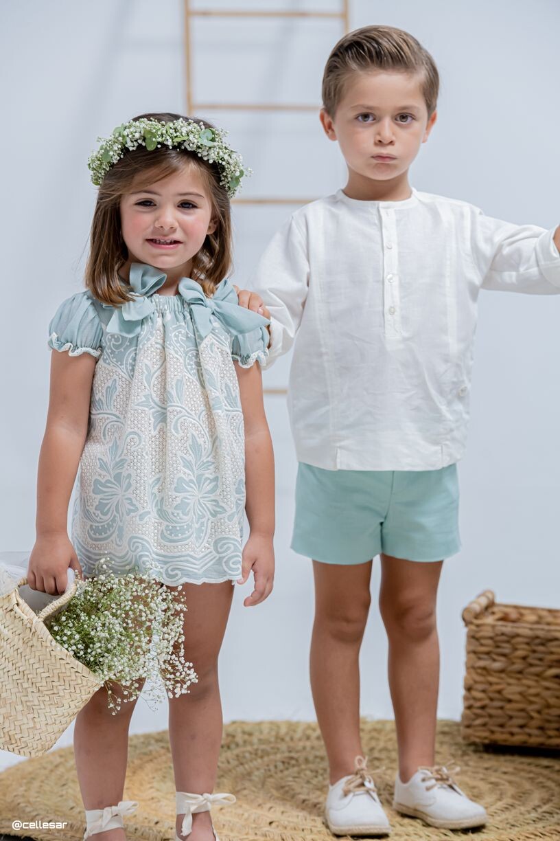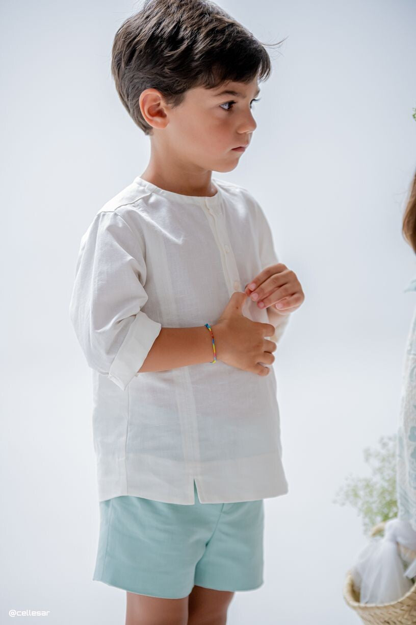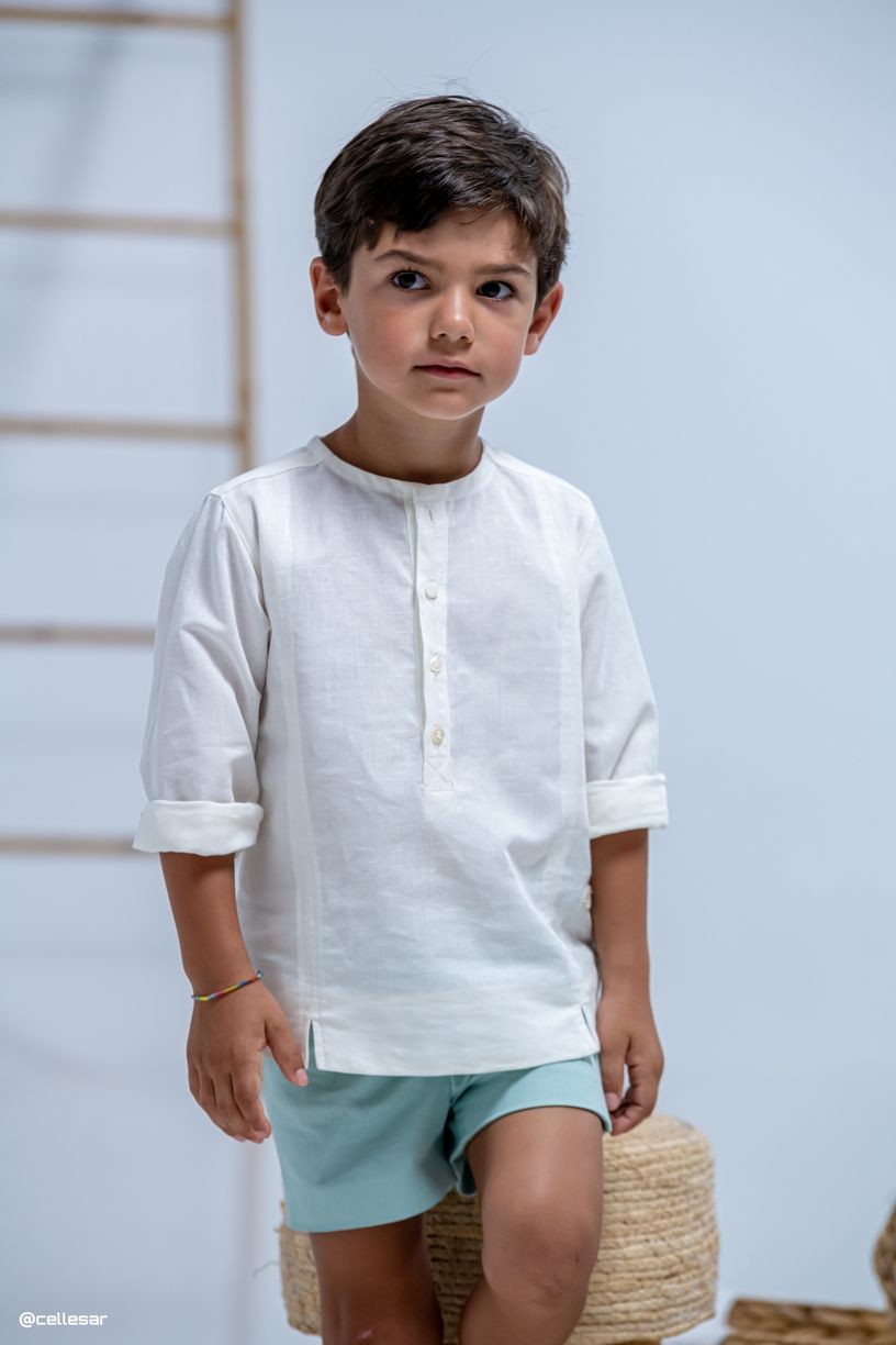 Conjunto de hombre: camisa cruda y pantalón corto verde menta de José Varón