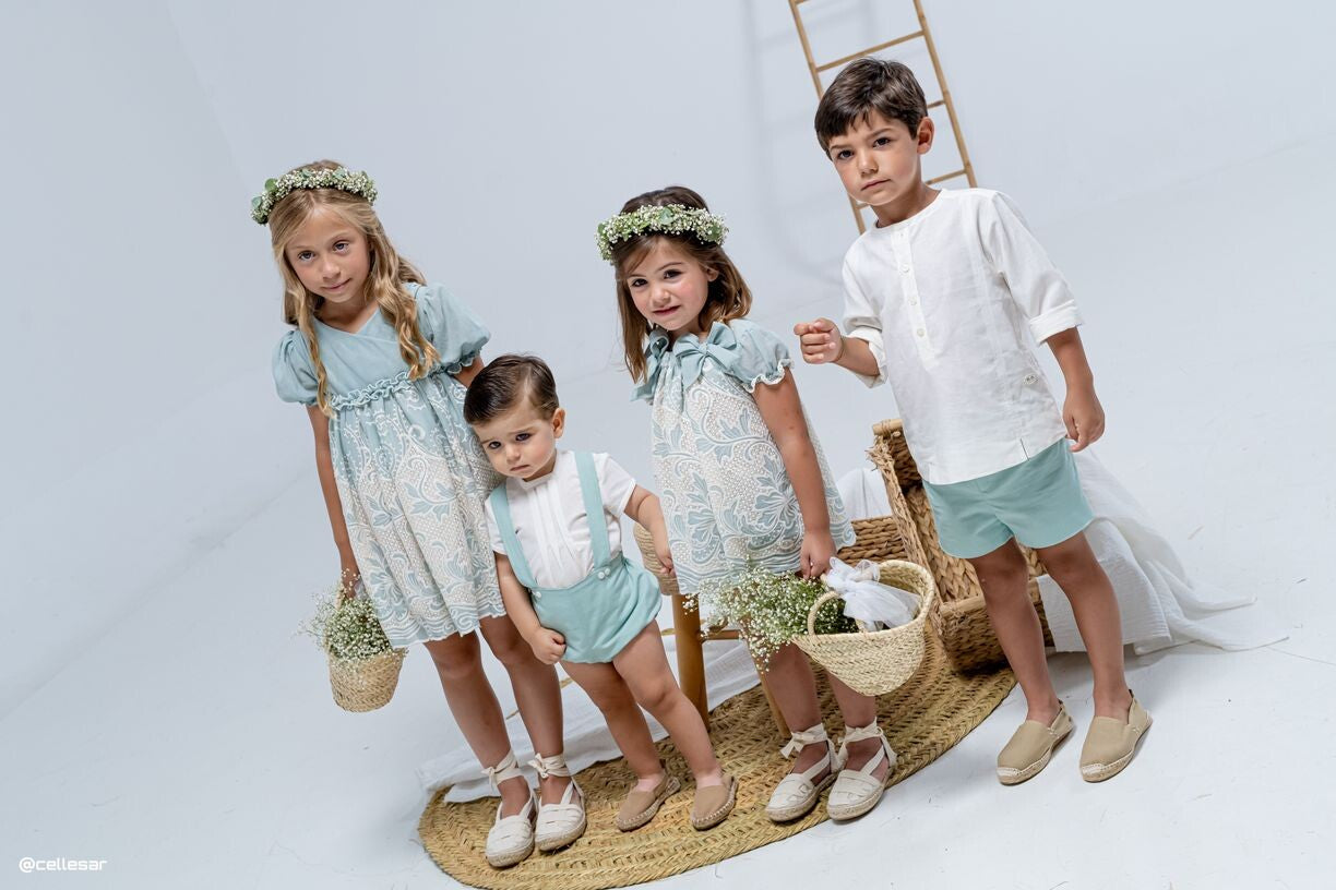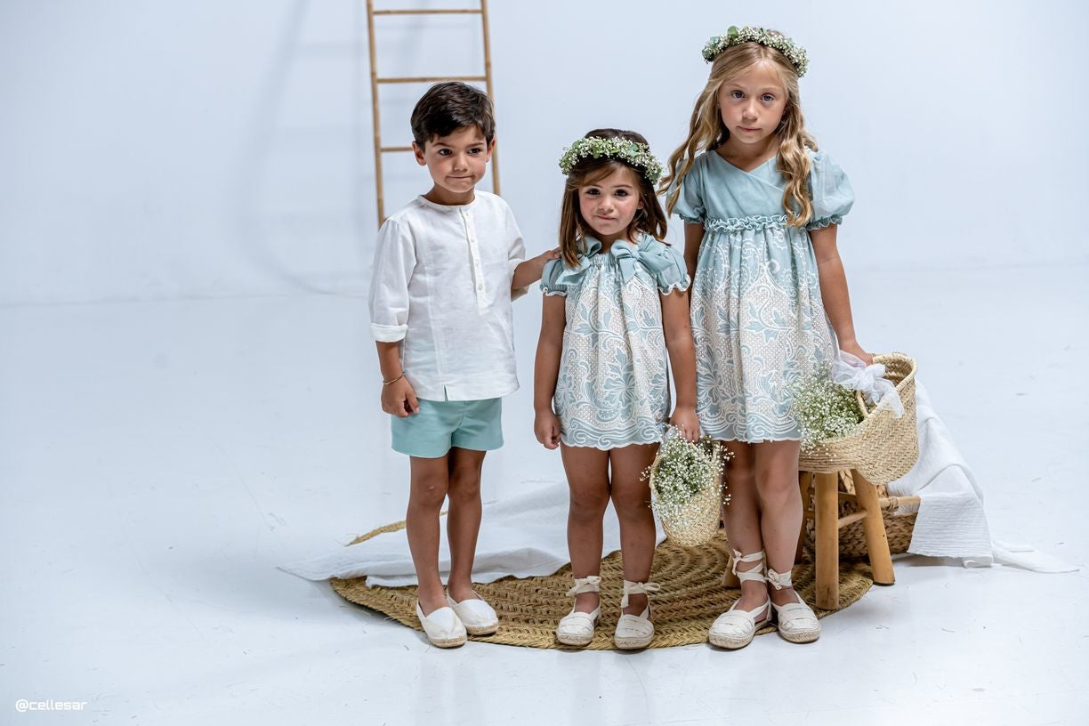 Los shorts verde menta tienen cinturilla elástica en la espalda y botones laterales. Están completamente forrados para mayor comodidad. Un conjunto precioso y cómodo para ceremonias de primavera/verano.