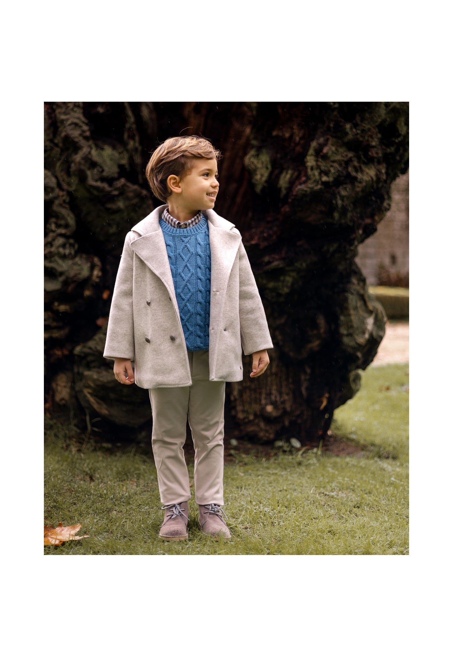 Abrigo campestre beige para niño “Maravillas” de Paz Rodríguez