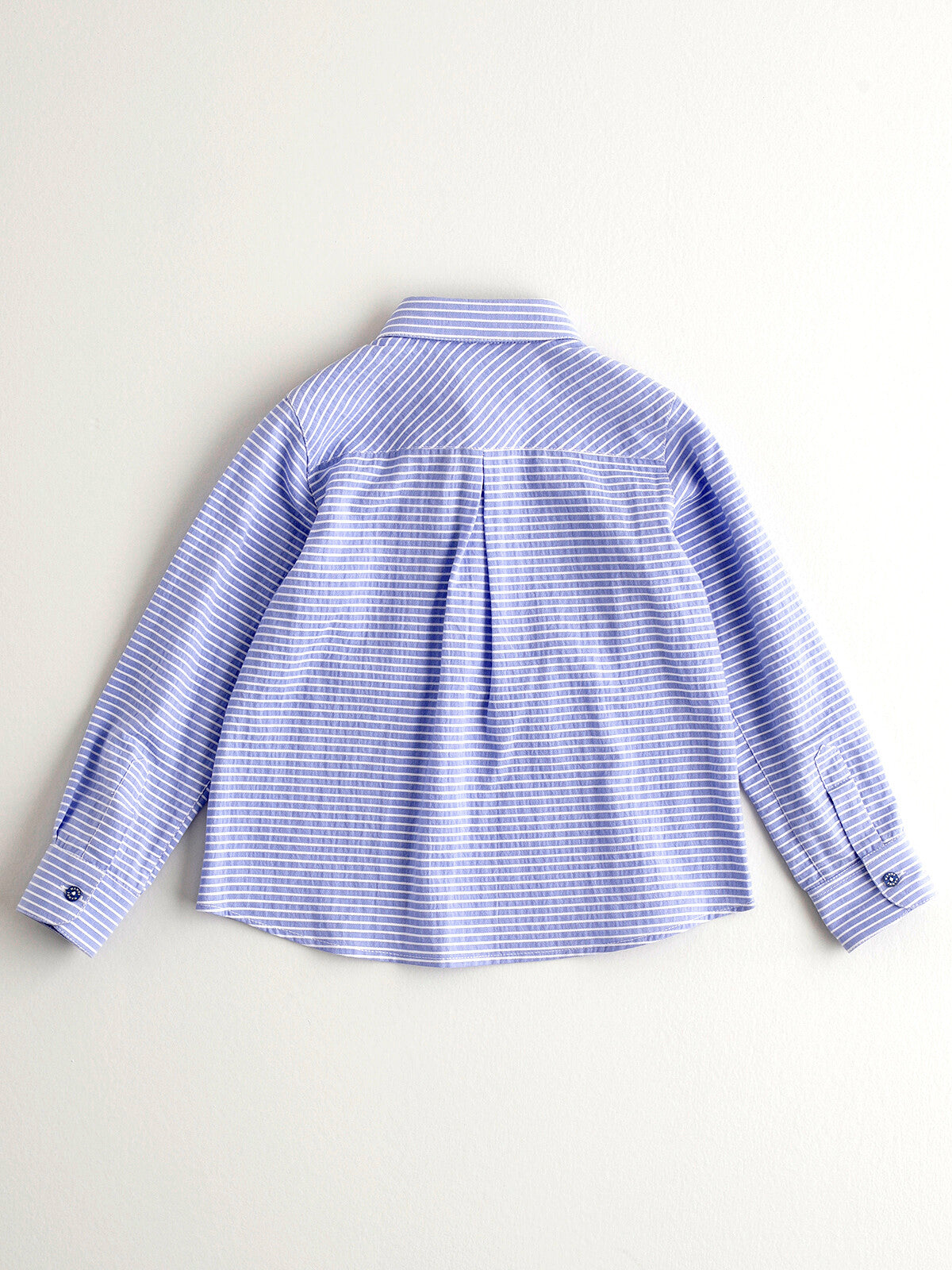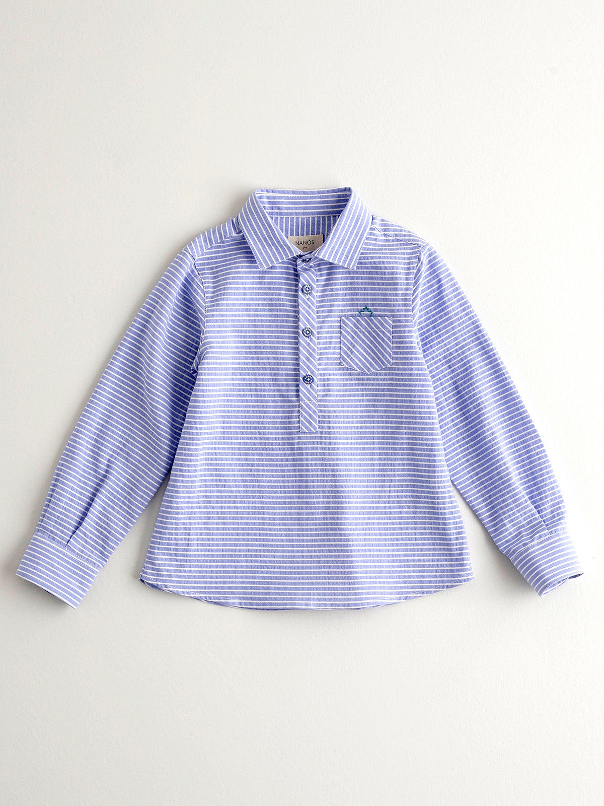 Camisa de algodón de calidad de la colección de rayas azules y blancas para hombre con bolsillo Nanos en el pecho