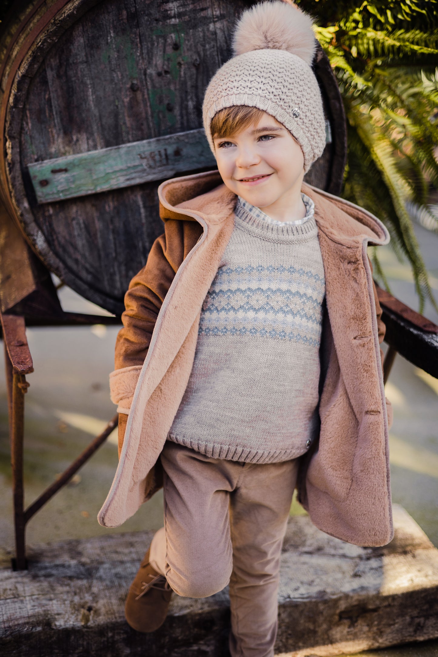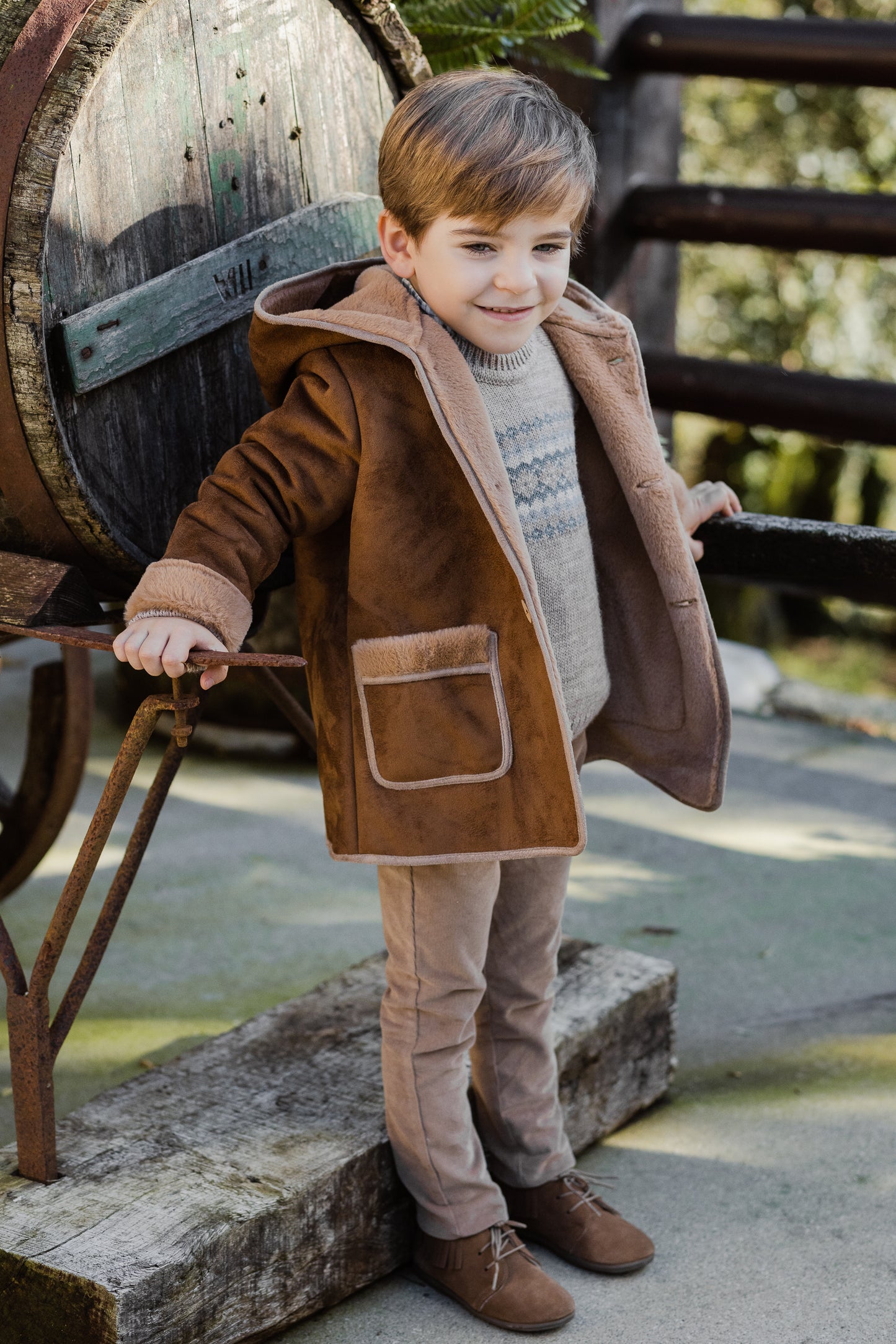 Chaqueta con capucha marrón "Pompon" de Paz Rodríguez