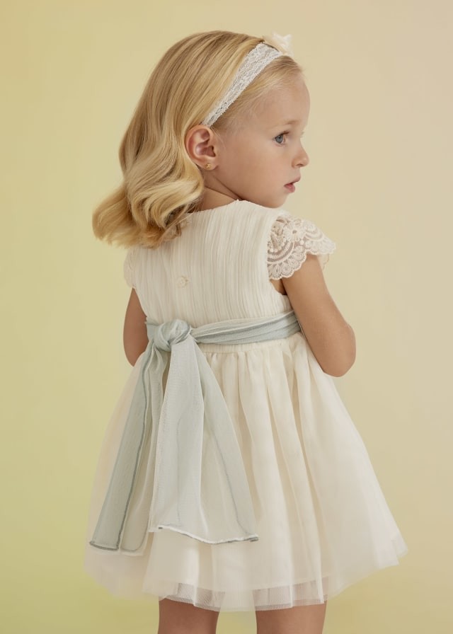 Vestido de tul plisado con fajín verde de Abel y Lula