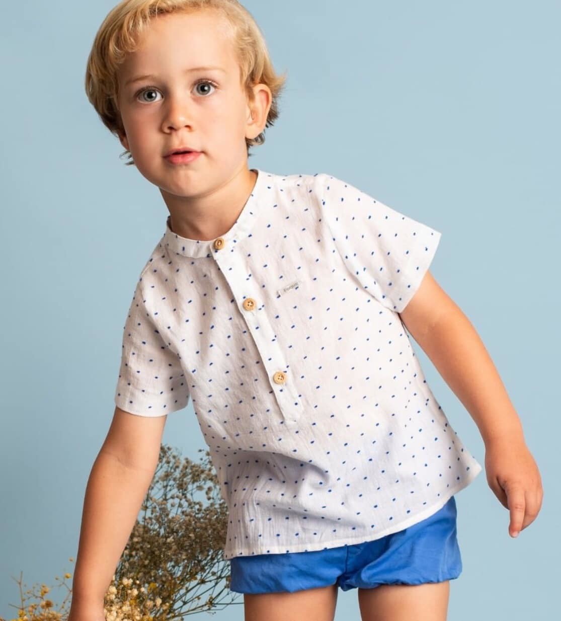 Camisa menino manga curta em tecido plumeti Foque