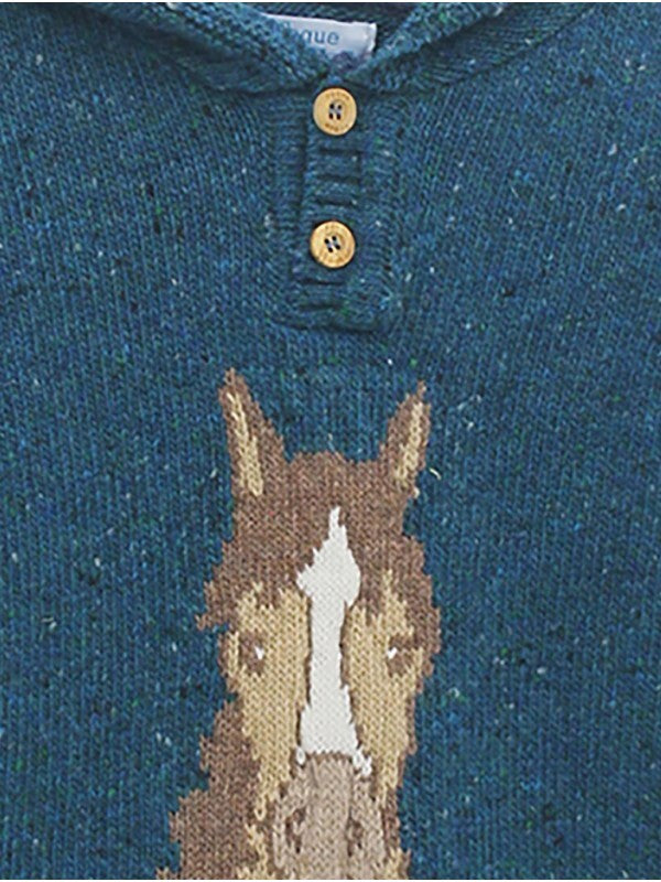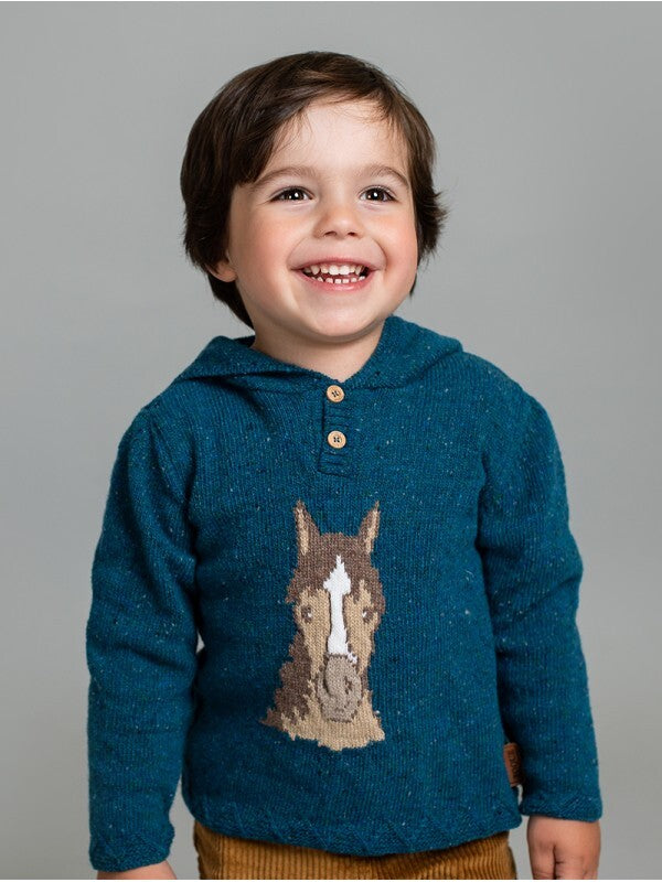 Camisola "cavalo" em tricot azul petróleo com capuz da Foque
