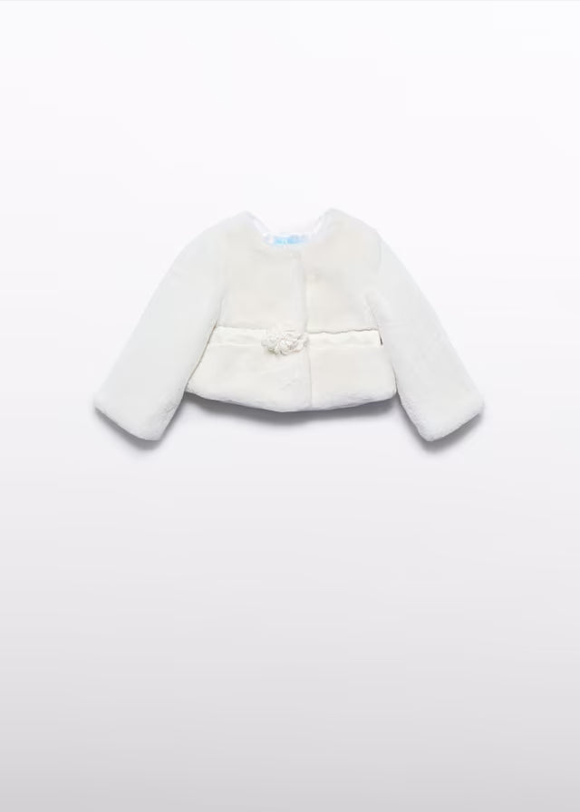 Casaco para bebé menina de pelo em tom cru da Abel e Lula.