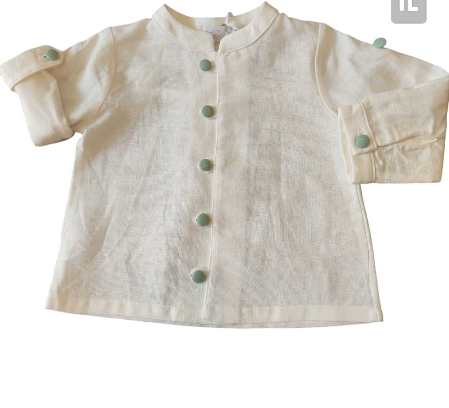 Conjunto cerimónia em linho cru e verde menta