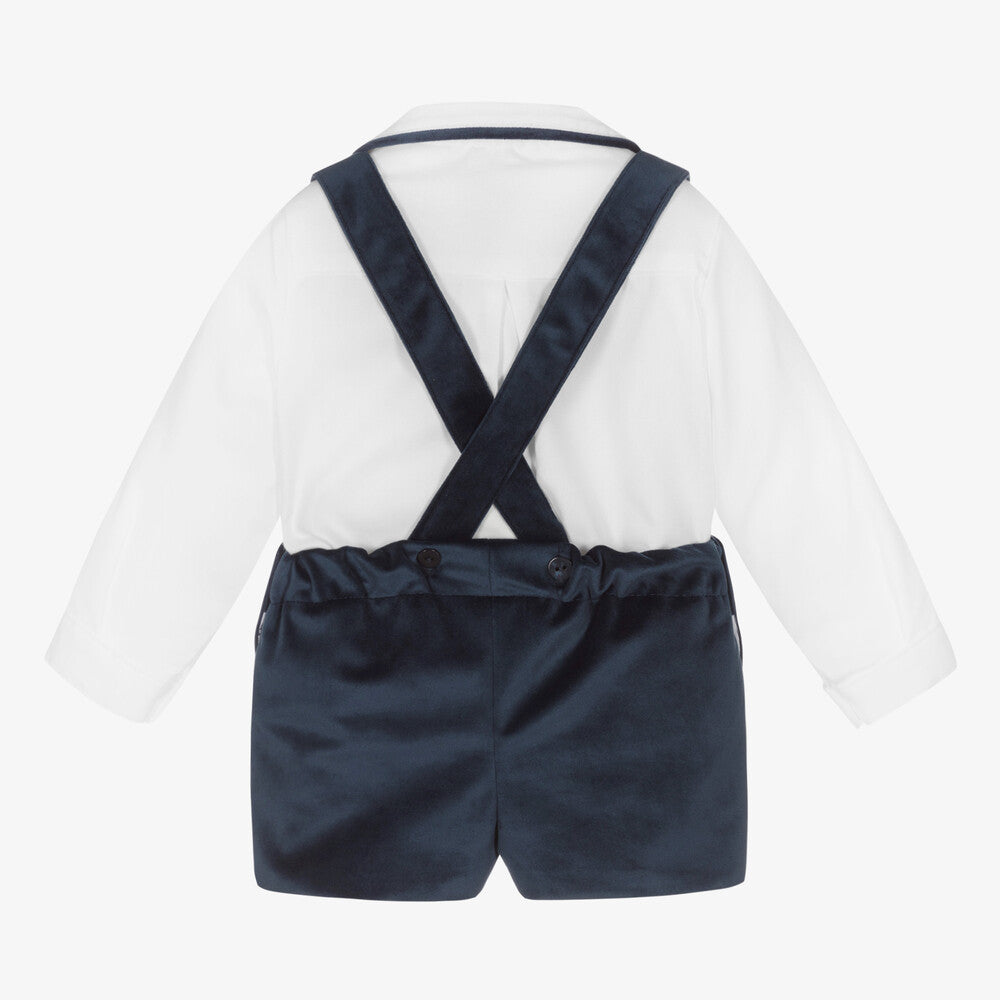 Conjunto menino calção veludo azul marinho & camisa branca Foque