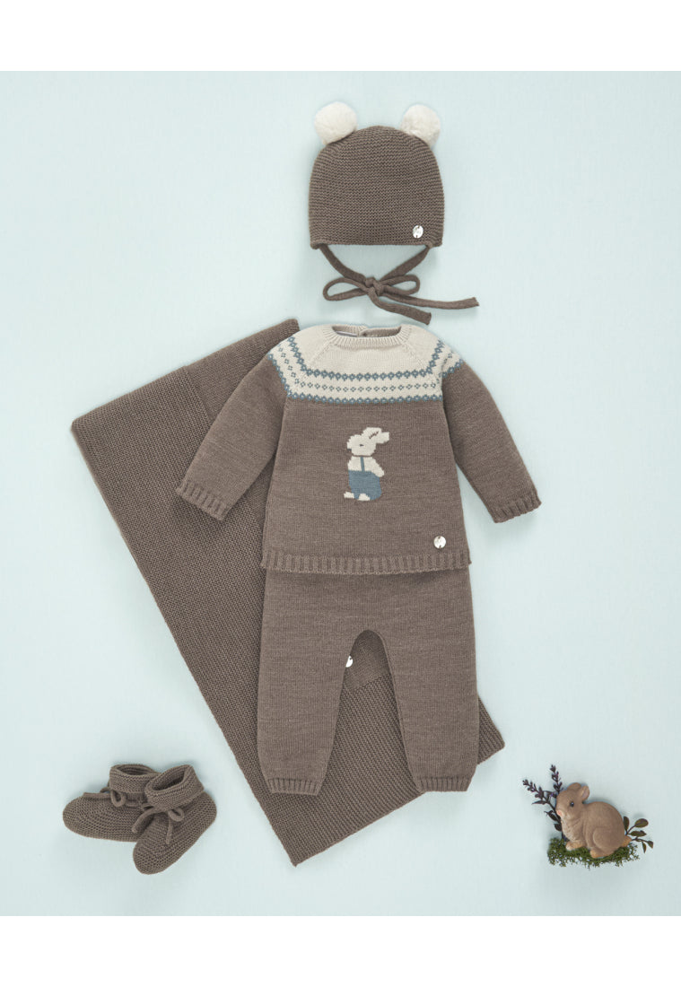 Conjunto tricot castanho coelhinho “Pompon” da Paz Rodriguez (Cópia)